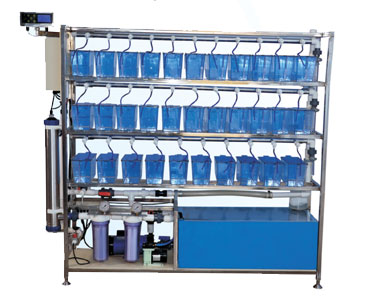 ZTEC Series is latest updated Zebrafish Housing System, ZTEC series has Four to Six Shelf/Row. Each shelf can holds maximum 10-liter Five, 3.2-liter ten and 1.6-liter twenty tanks per shelf or combination, ZTEC Series extendable up to Multi Rack (Row) system. It’s a combination of multiple shelf with has centralize recirculation control unit. Rack size should be flexible and would be designed by the supplier according to the room size.